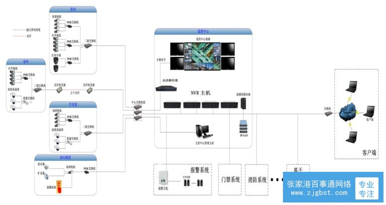 张家港监控工程是通过光纤、光端机、无线网桥等传输视频信息进行监控的系统。